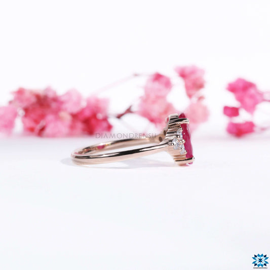 ProdajaZaručnički prsten od prirodnog rubina, 2.04 CT ovalni rezani rubin prsten s rodnim kamenom u julu