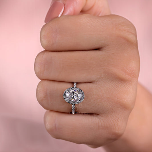ProdajaOvalni verenički prsten, E/VS1 laboratorijski zaručnički prsten sa dijamantom sa oreolom, IGI certificirani laboratorijski dijamantski prsten