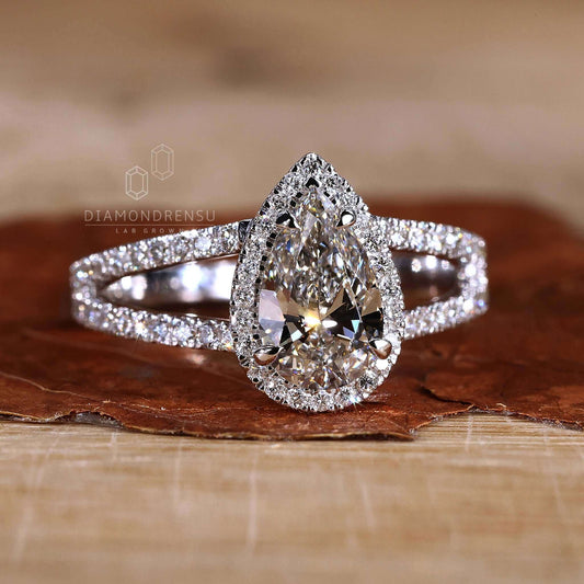 ProdajaZaručnički prsten s dijamantom Halo iz laboratorijske kruške rezanja za žene
