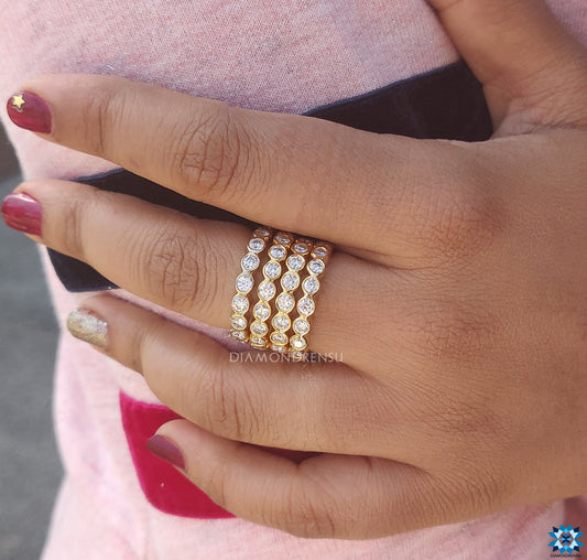 ProdajaOkrugli bezbojni Moissanite Full Eternity Band | Vjenčani set bezel | Set od 4
