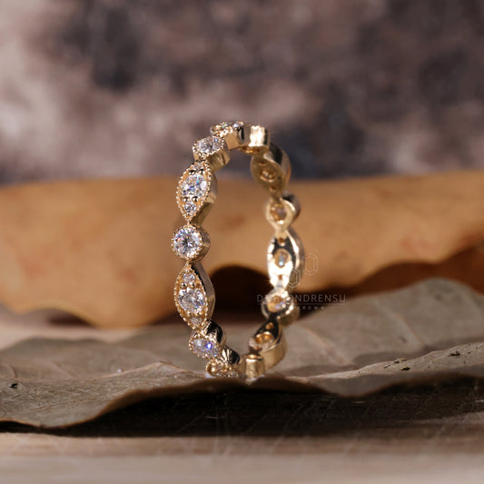 ProdajaVjenčani prsten u vintage stilu, 0,75 TW okrugli brilijantni rez, set okvira Milgrain Set Lab Created Diamond Eternity Band