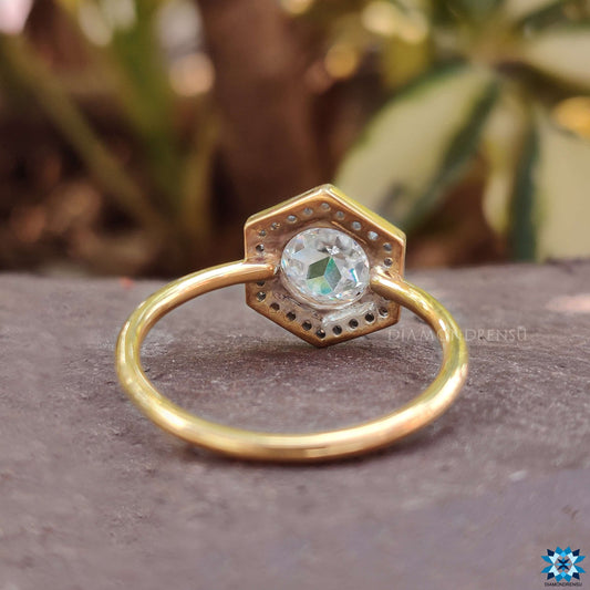 ProdajaZaručnički prsten u vintage stilu sa šesterokutnim obrisom okruglog ruža