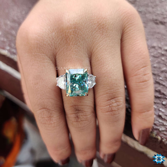 Prodaja10.21 TCW Zaručnički prsten s tri kamena radiant Cut Aqua Green Moissanite