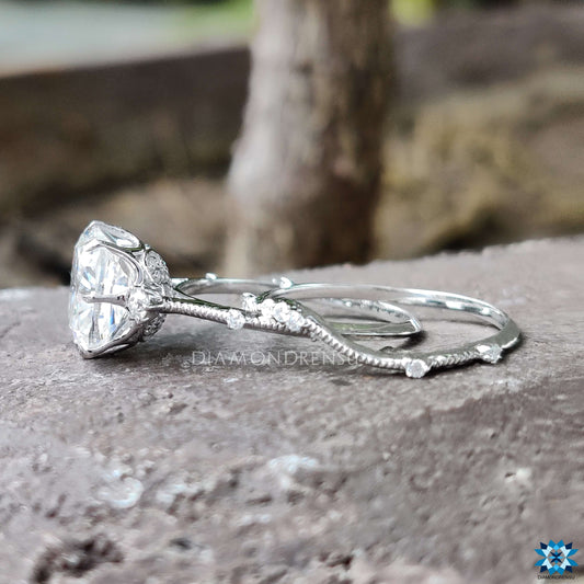 Prodaja3.97 TCW Cushion Cut Delicate Cathedral Set Moissanite svadbeni set
