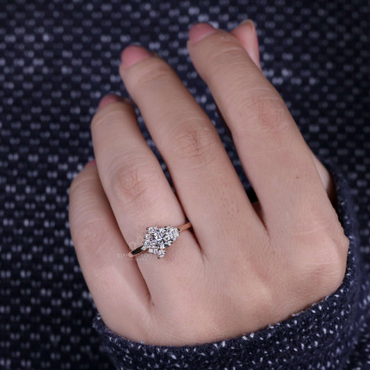 ProdajaZaručnički prsten klastera, 0,70 CT okrugli zaručnički prsten sa dijamantom uzgojenim u laboratoriji