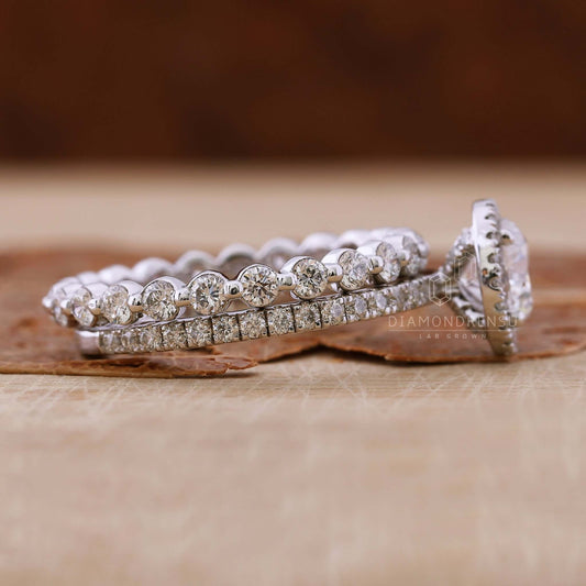 Sale0.85 CT Round Lab Grown Diamond Halo Engagement Ring with Floating Bubble Band, Bridal Set
