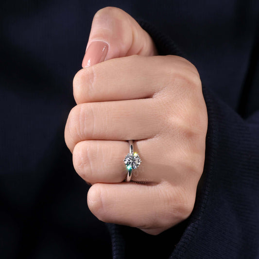 Sale1 CT Round Cut Diamond Ring, Lab Grown Diamond Engagement Ring, Six Prongs Solitaire Ring