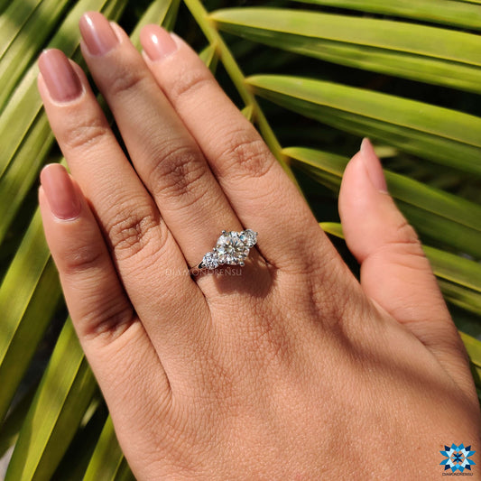Sale2.20 TCW Round Cut Colorless Moissanite Three Stones Engagement Ring