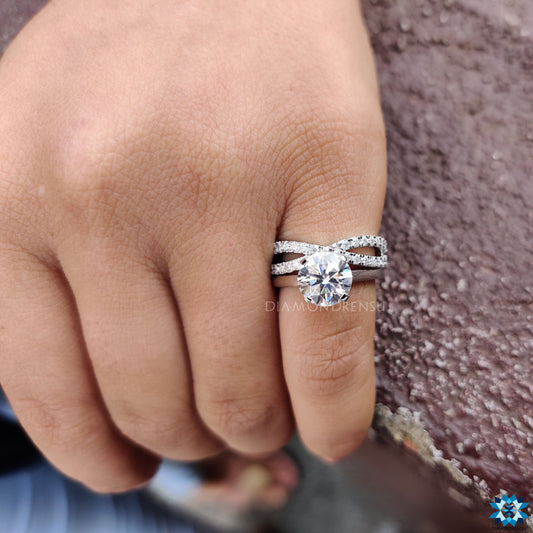 SaleCross Over 2.33 TW Round Moissanite Claw Prong Setting Pretty Bridal Set