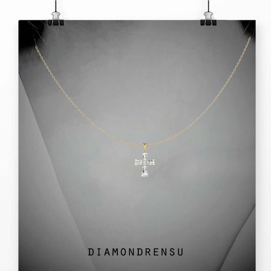 Sale1.29 TCW Princess and Tapered Baguette Moissanite Cross Cross Wedding Pendant