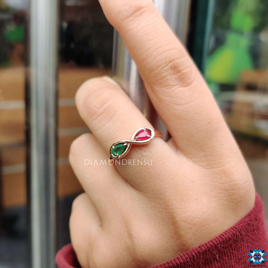 Sale0.47 TW Pear Shape Ruby and Emerald Infinity Style Unique Wedding Band